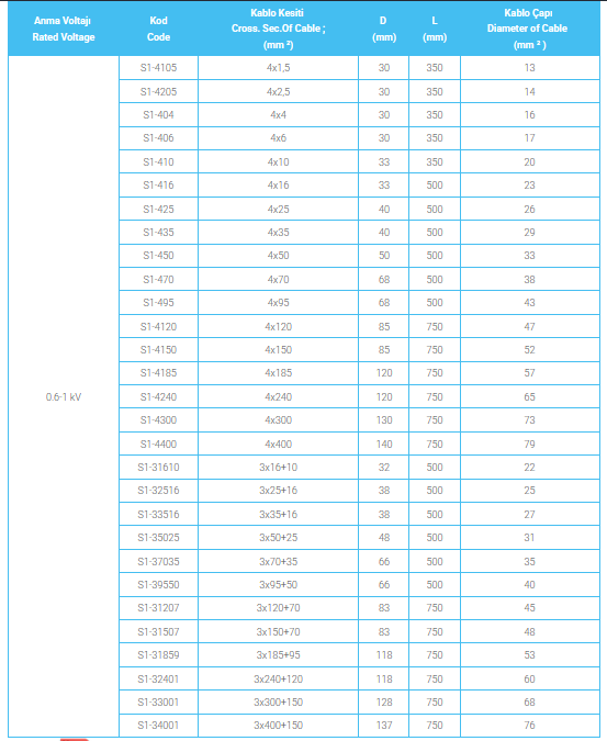 1kV Bakır İletkenli Isı Büzüşmeli Ek Muf