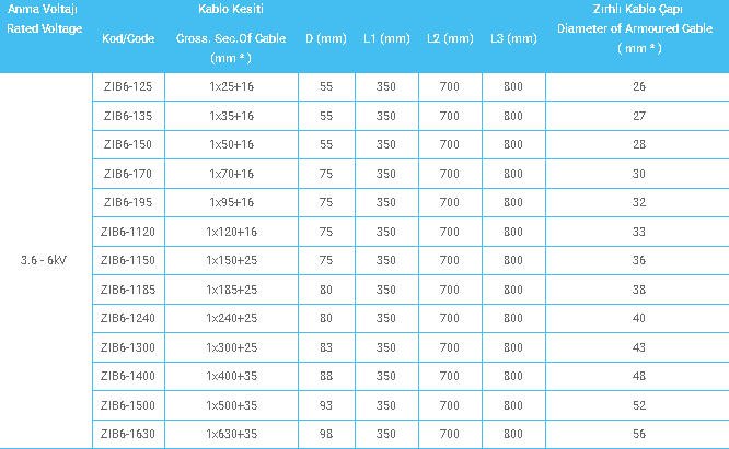 6kV Zırhlı Tek Damarlı Bakır İletkenli Isı Büzüşmeli Ek Muf