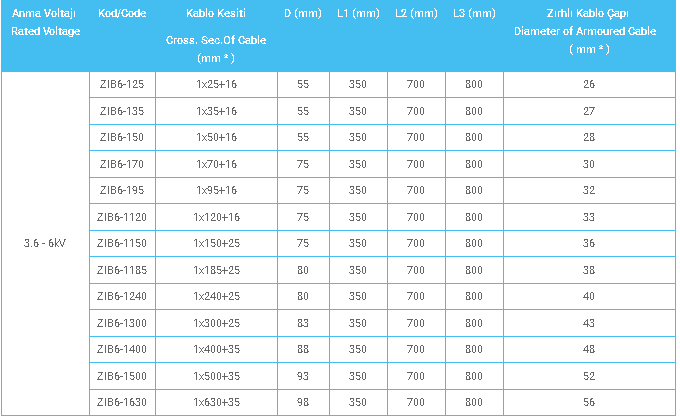 6kV Zırhlı Tek Damarlı AL İletkenli Isı Büzüşmeli Ek Muf