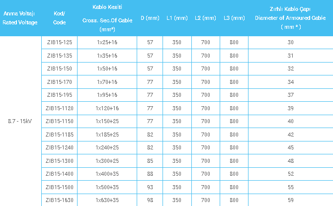15kV Zırhlı Tek Damarlı AL İletkenli Isı Büzüşmeli Ek Muf