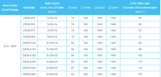36kV Zırhlı Üç Damarlı Bakır İletkenli Isı Büzüşmeli Ek Muf