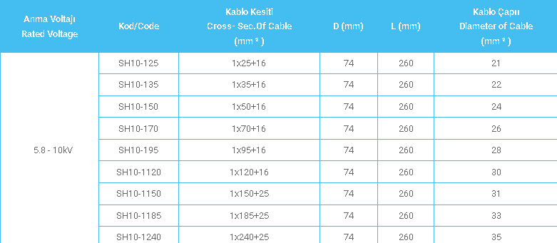 10kV Harici Tip Tek Damar Silikon Kablo Başlığı