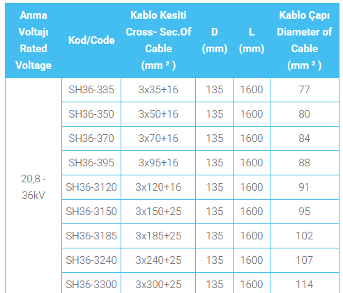 36kV Harici Üç Damar Silikon Kablo Başlığı