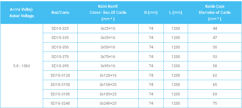 10kV Dahili Üç Damar Silikon Kablo Başlığı