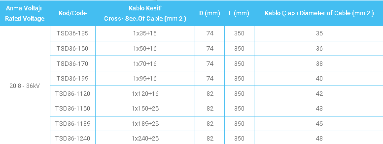 36kV Tesla Dahili Tek Damar Silikon Kablo Başlığı
