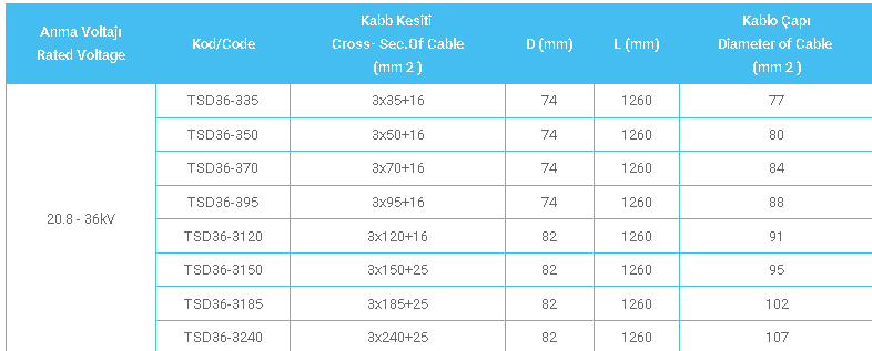 36kV Tesla Dahili Üç Damar Silikon Kablo Başlığı